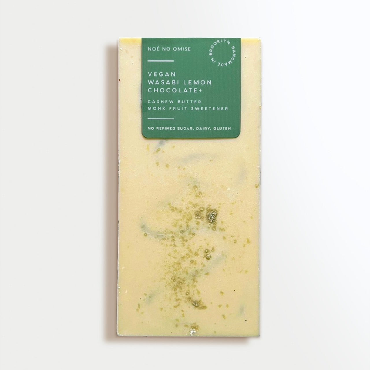 Crafted with pure ingredients: cacao butter, homemade roasted cashew butter, and Lakanto (a monk fruit sweetener). Featuring handmade wasabi jam with a hint of lemon, inspired by a summer journey through Japan.